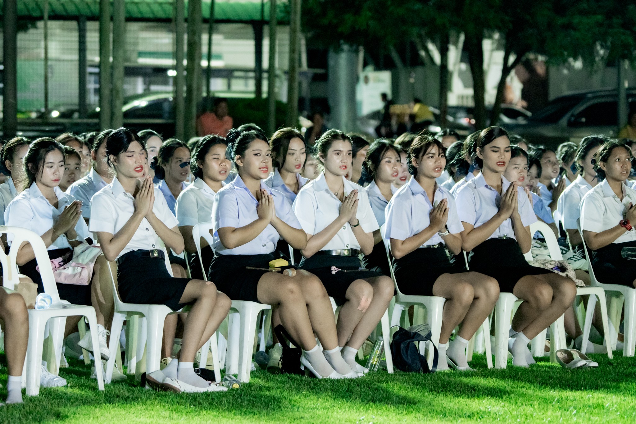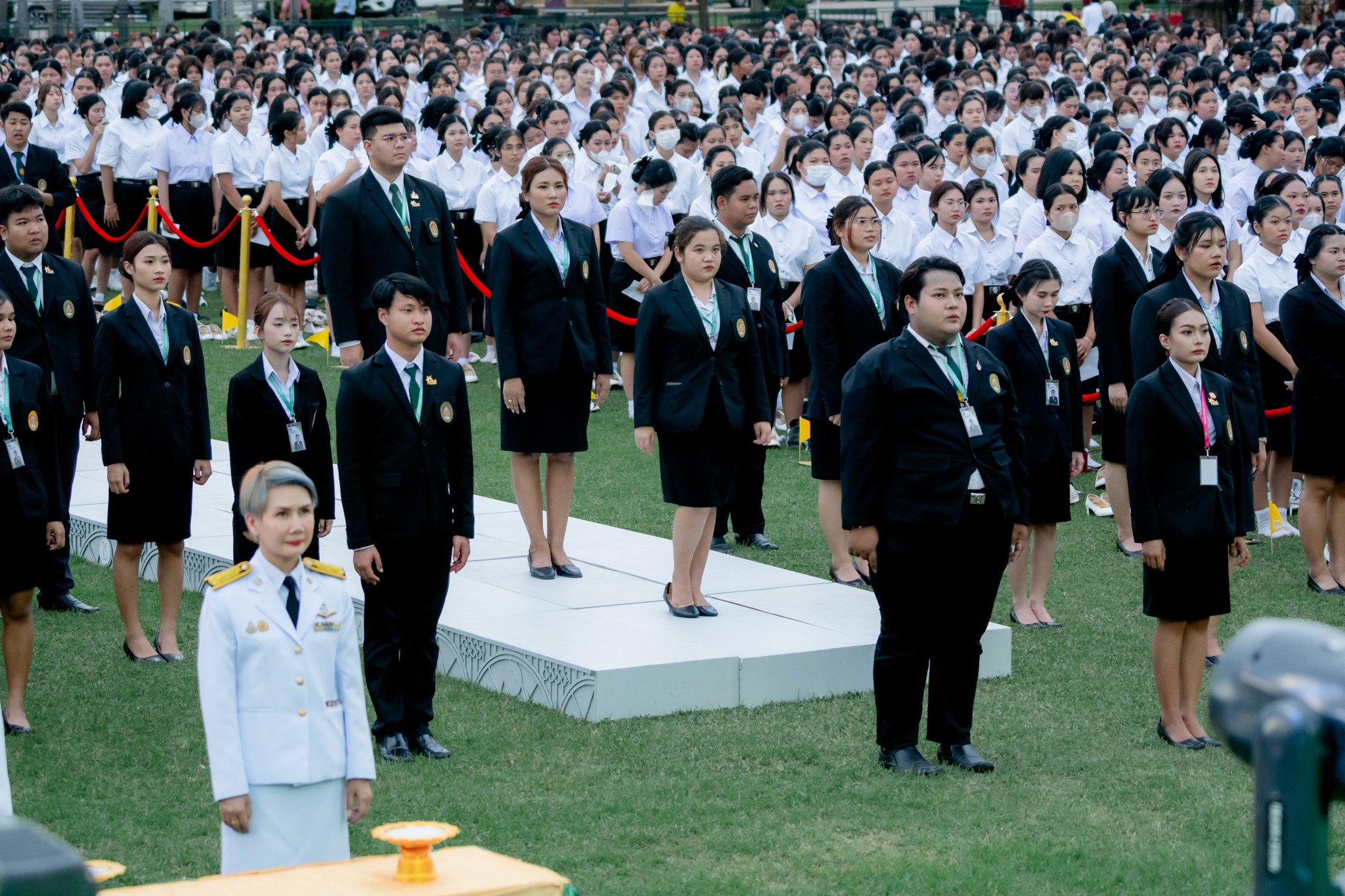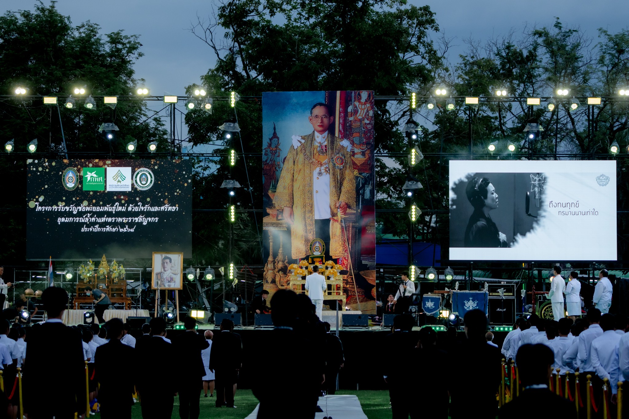 บรรยากาศภายในพิธีเต็มไปด้วยความซาบซึ้ง เมื่อผู้เข้าร่วมพิธีทั้งหมดร่วมกันขับร้องเพลง "ความฝันอันสูงสุด" และนักศึกษาใหม่ได้ถวายบังคมตามโบราณราชประเพณี เพื่อแสดงความเคารพและสำนึกในพระมหากรุณาธิคุณ