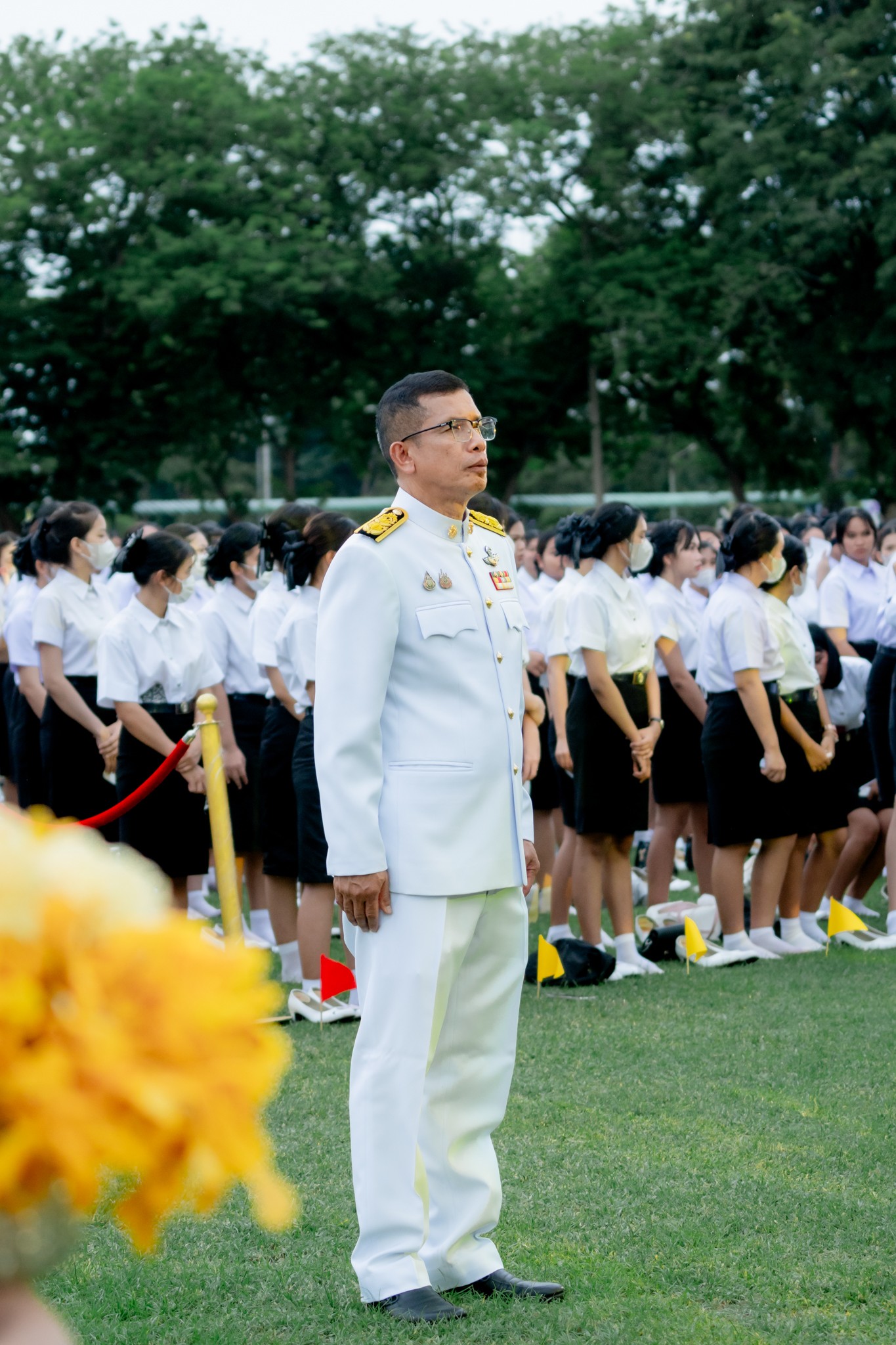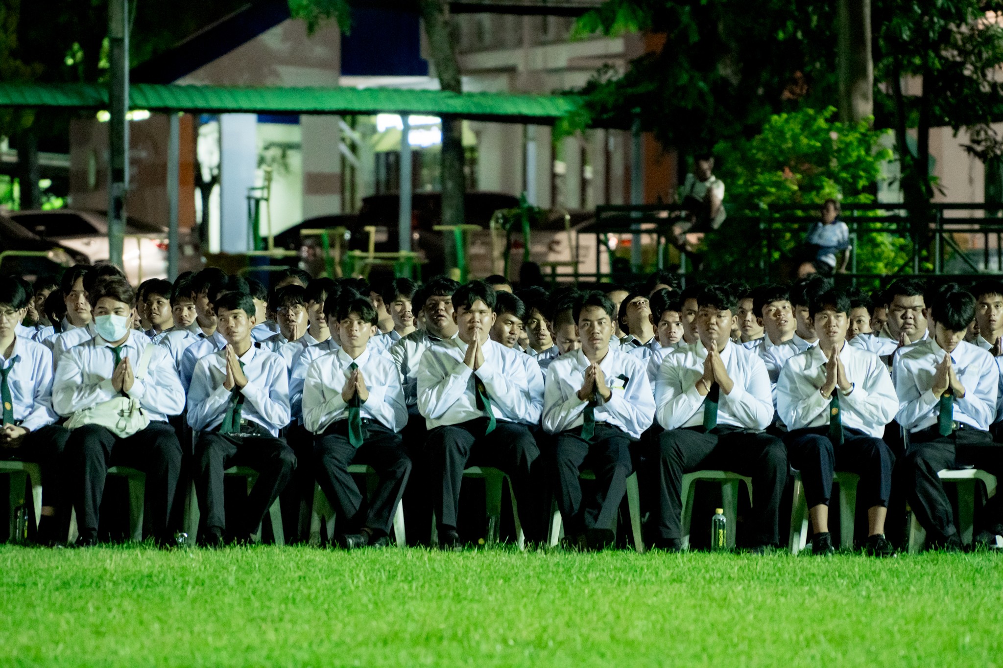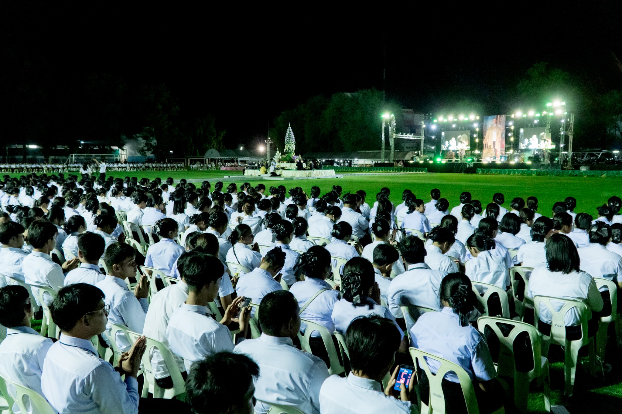บรรยากาศภายในพิธีเต็มไปด้วยความซาบซึ้ง เมื่อผู้เข้าร่วมพิธีทั้งหมดร่วมกันขับร้องเพลง "ความฝันอันสูงสุด" และนักศึกษาใหม่ได้ถวายบังคมตามโบราณราชประเพณี เพื่อแสดงความเคารพและสำนึกในพระมหากรุณาธิคุณ