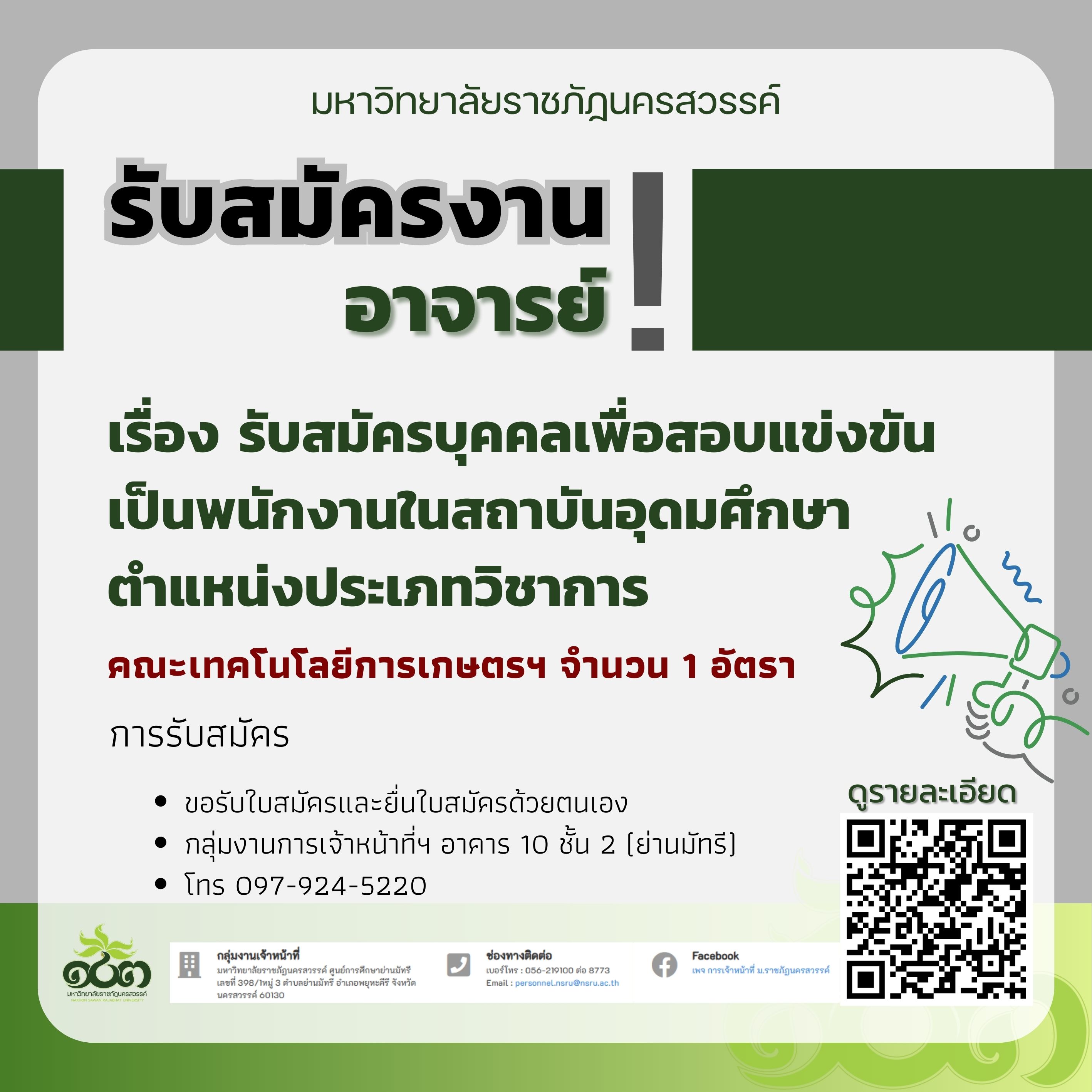 รับสมัครบุคคลเพื่อสอบแข่งขันเป็นพนักงานในสถาบันอุดมศึกษา ตำแหน่งประเภทวิชาการ