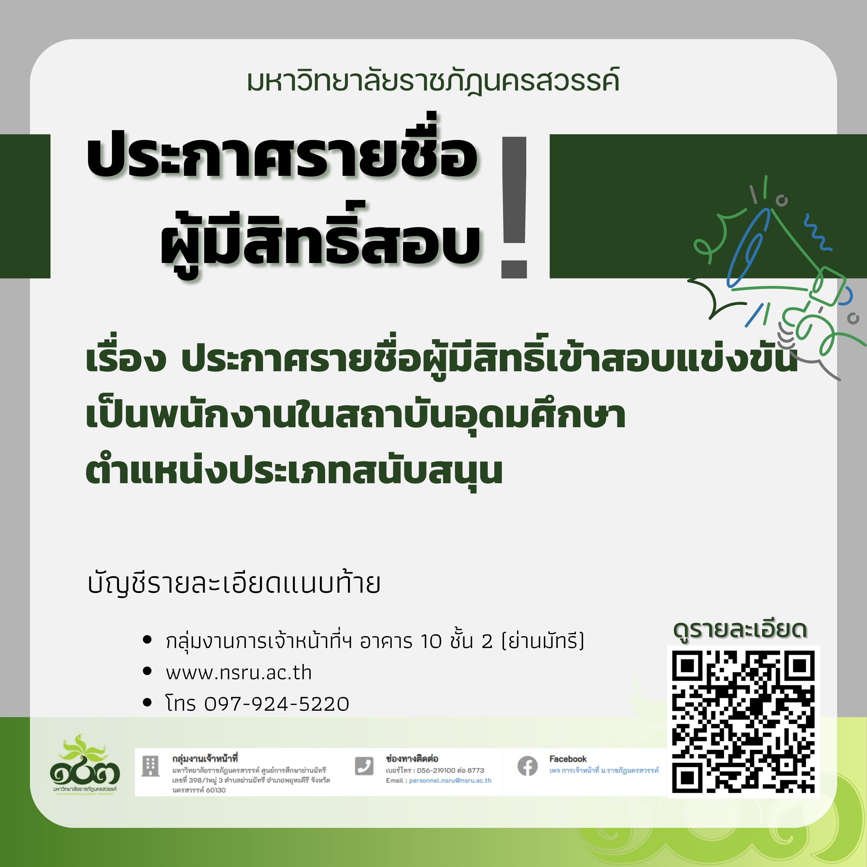 ประกาศรายชื่อผู้มีสิทธิ์เข้าสอบแข่งขันเป็นพนักงานในสถาบันอุดมศึกษา ตำแหน่งประเภทสนับสนุน
