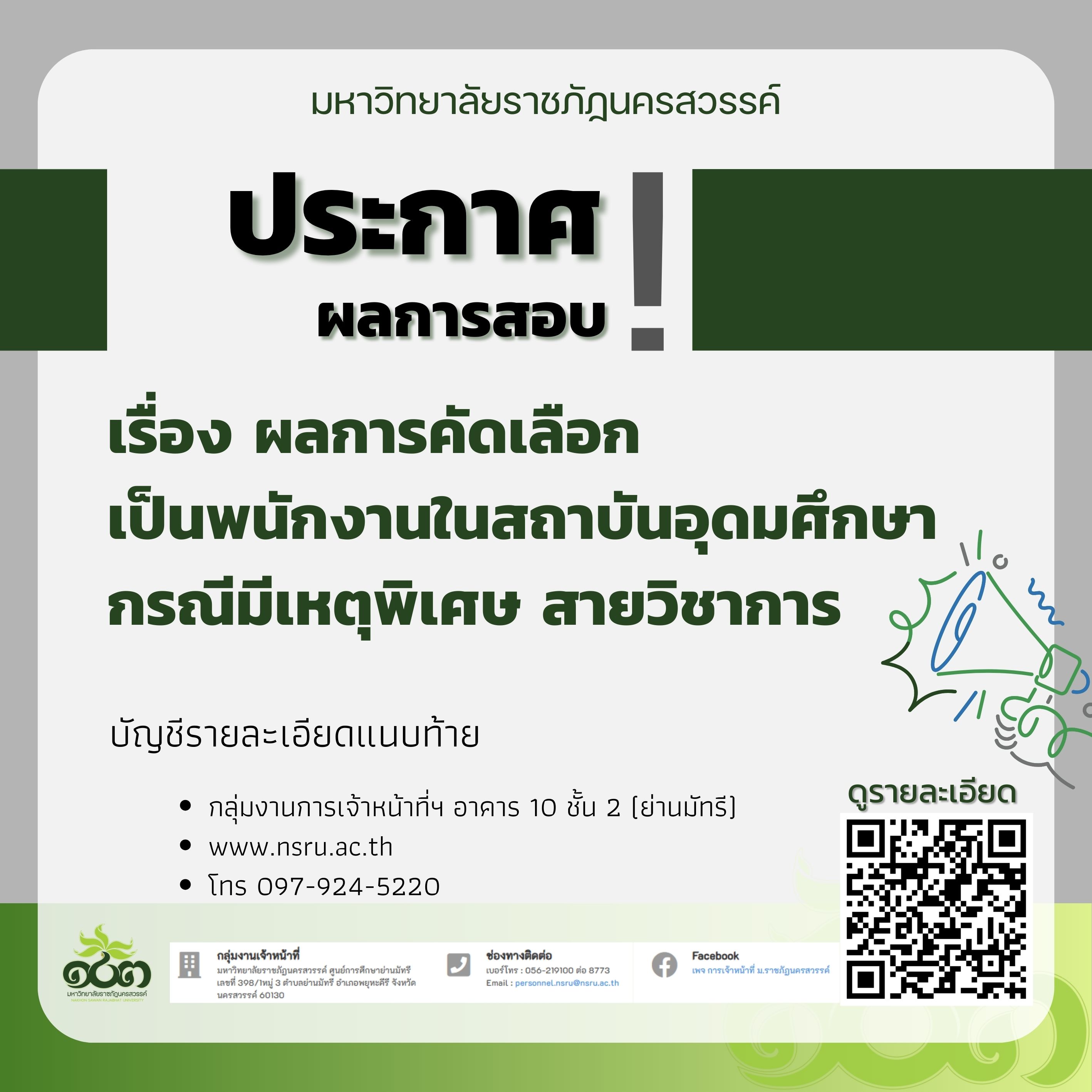 ผลการคัดเลือกเป็นพนักงานในสถาบันอุดมศึกษา กรณีมีเหตุพิเศษ สายวิชาการ
