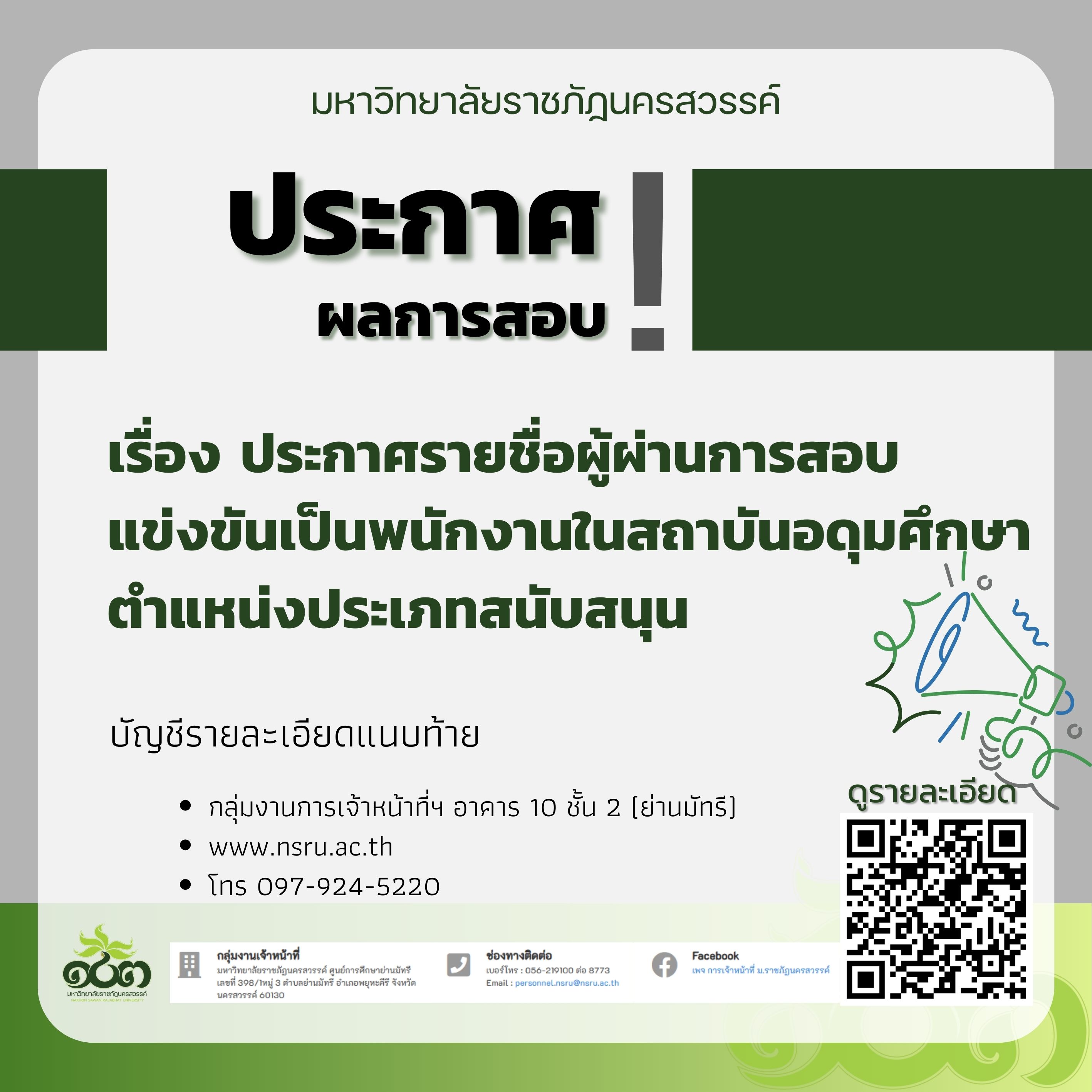 ประกาศรายชื่อผู้ผ่านการสอบแข่งขันเป็นพนักงานในสถาบันอดุมศึกษา ตำแหน่งประเภทสนับสนุน