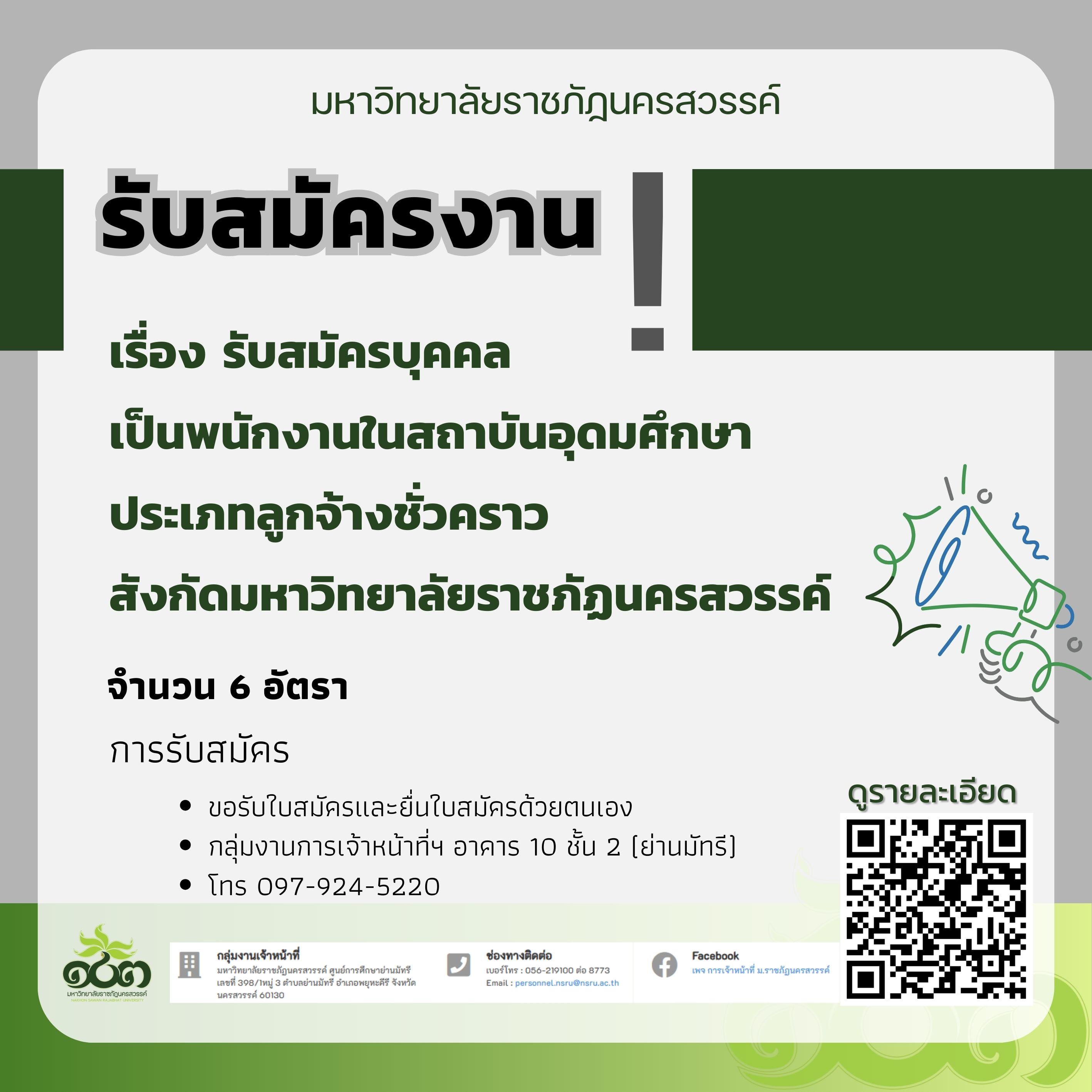 รับสมัครบุคคลเป็นพนักงานในสถาบันอุดมศึกษา ประเภทลูกจ้างชั่วคราว สังกัดมหาวิทยาลัยราชภัฏนครสวรรค์