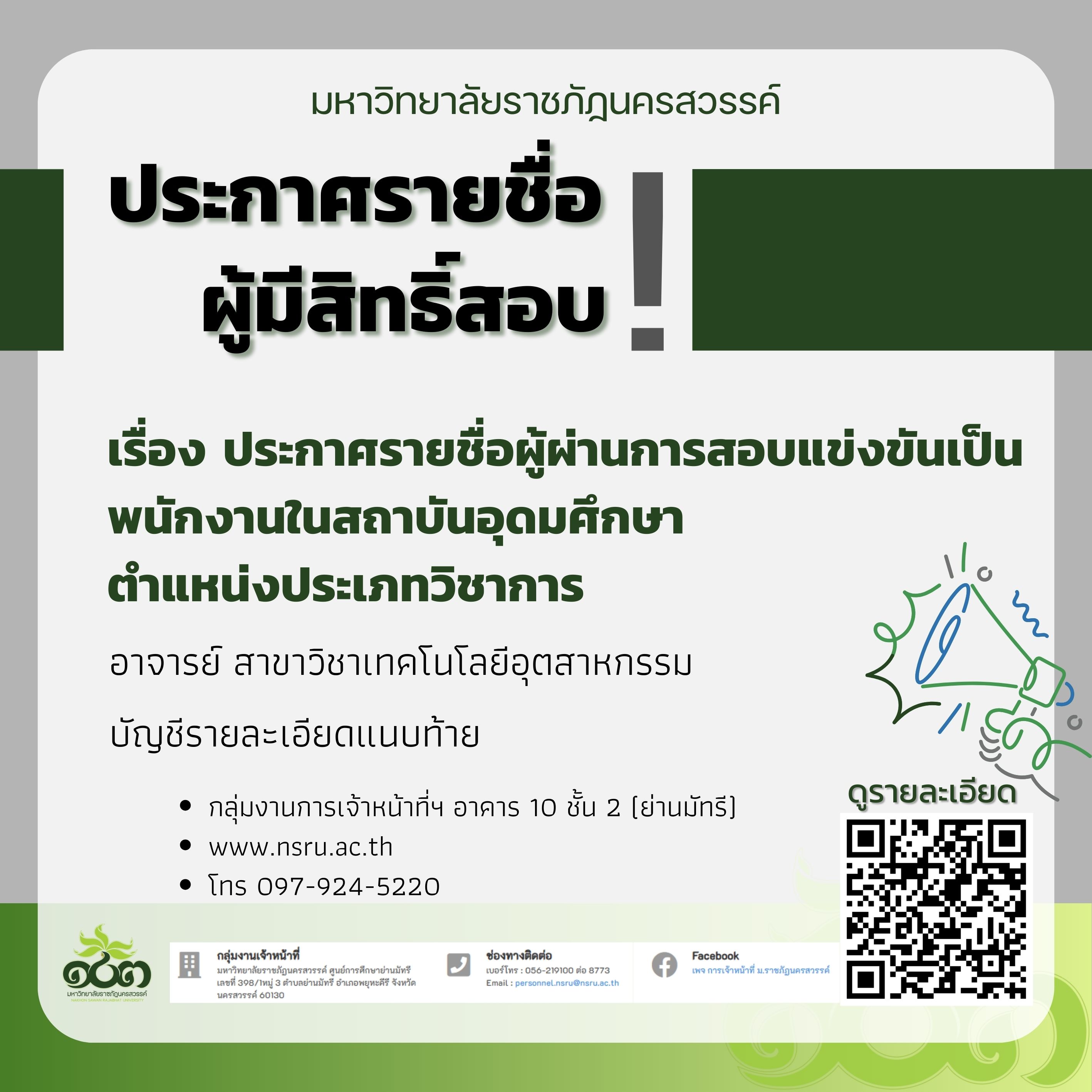 ประกาศรายชื่อผู้ผ่านการสอบแข่งขันเป็นพนักงานในสถาบันอุดมศึกษา ตำแหน่งประเภทวิชาการ