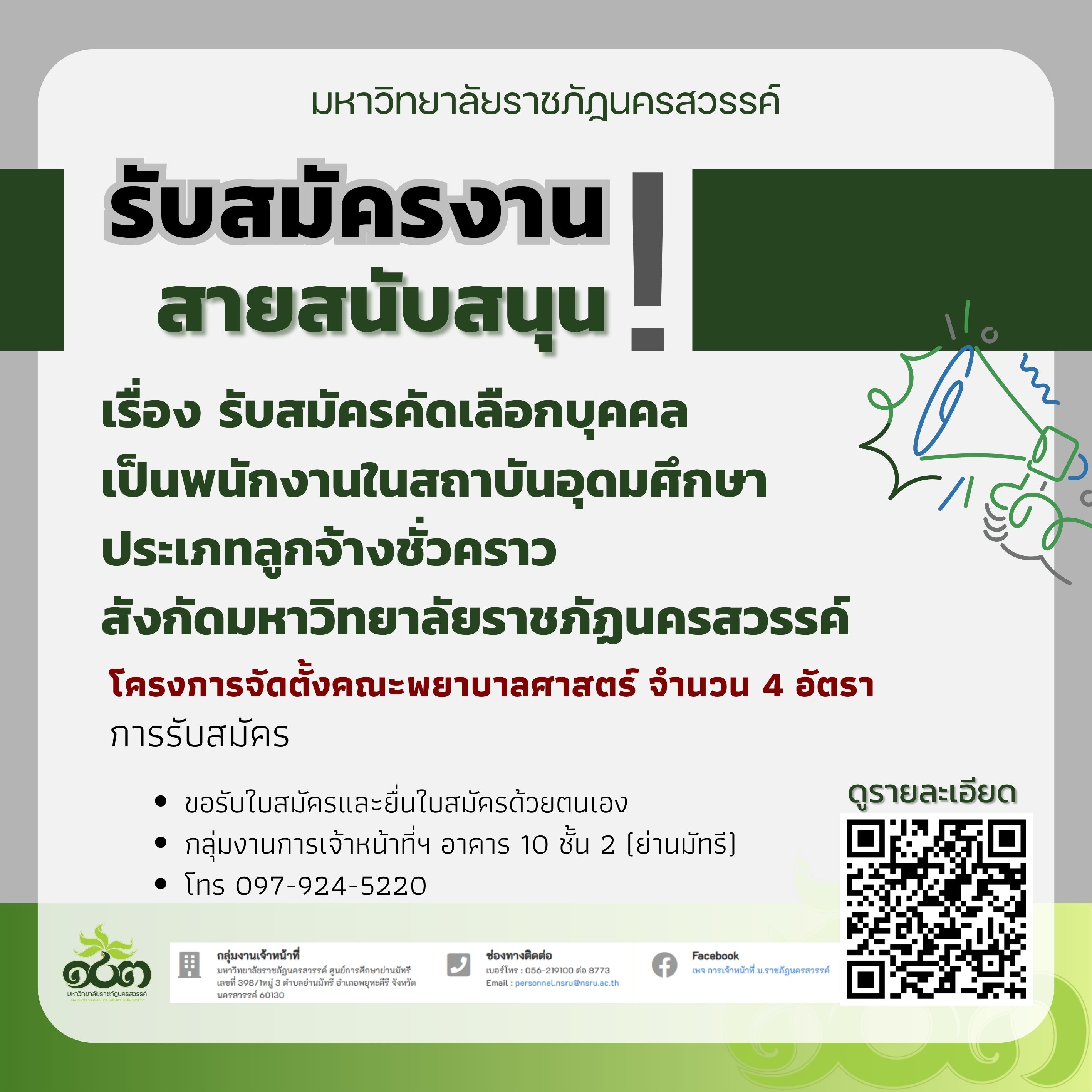 รับสมัครคัดเลือกบุคคลเป็นพนักงานในสถาบันอุดมศึกษา ประเภทลูกจ้างชั่วคราว สังกัดมหาวิทยาลัยราชภัฏนครสวรรค์