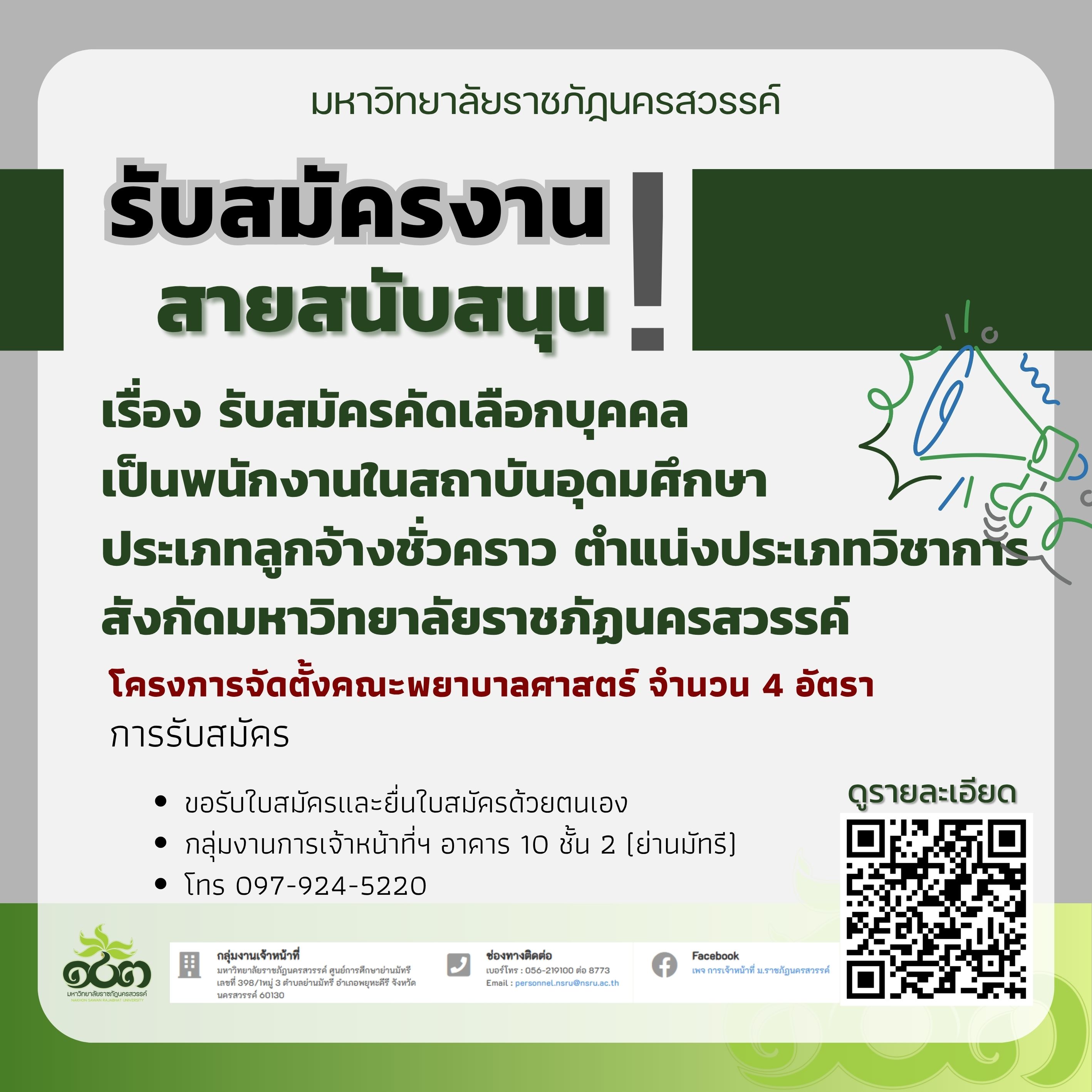 รับสมัครคัดเลือกบุคคลเป็นพนักงานในสถาบันอุดมศึกษา ประเภทลูกจ้างชั่วคราว ตำแน่งประเภทวิชาการ สังกัดมหาวิทยาลัยราชภัฏนครสวรรค์