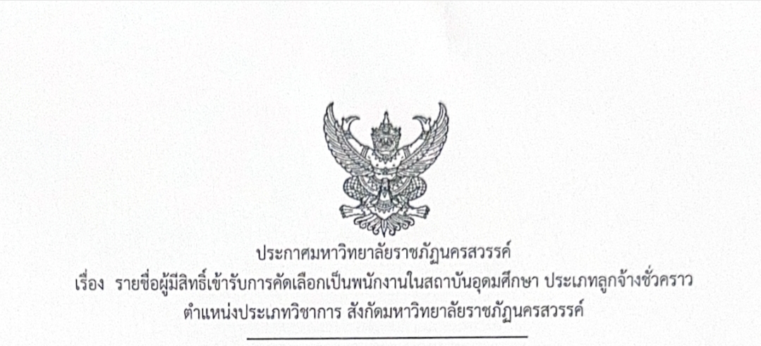 รายชื่อผู้มีสิทธิ์เข้ารับการคัดเลือกเป็นพนักงานในสถาบันอุดมศึกษา ประเภทลูกจ้างชั่วคราว ตำแหน่งประเภทวิชาการ สังกัดมหาวิทยาลัยราชภัฏนครสวรรค์