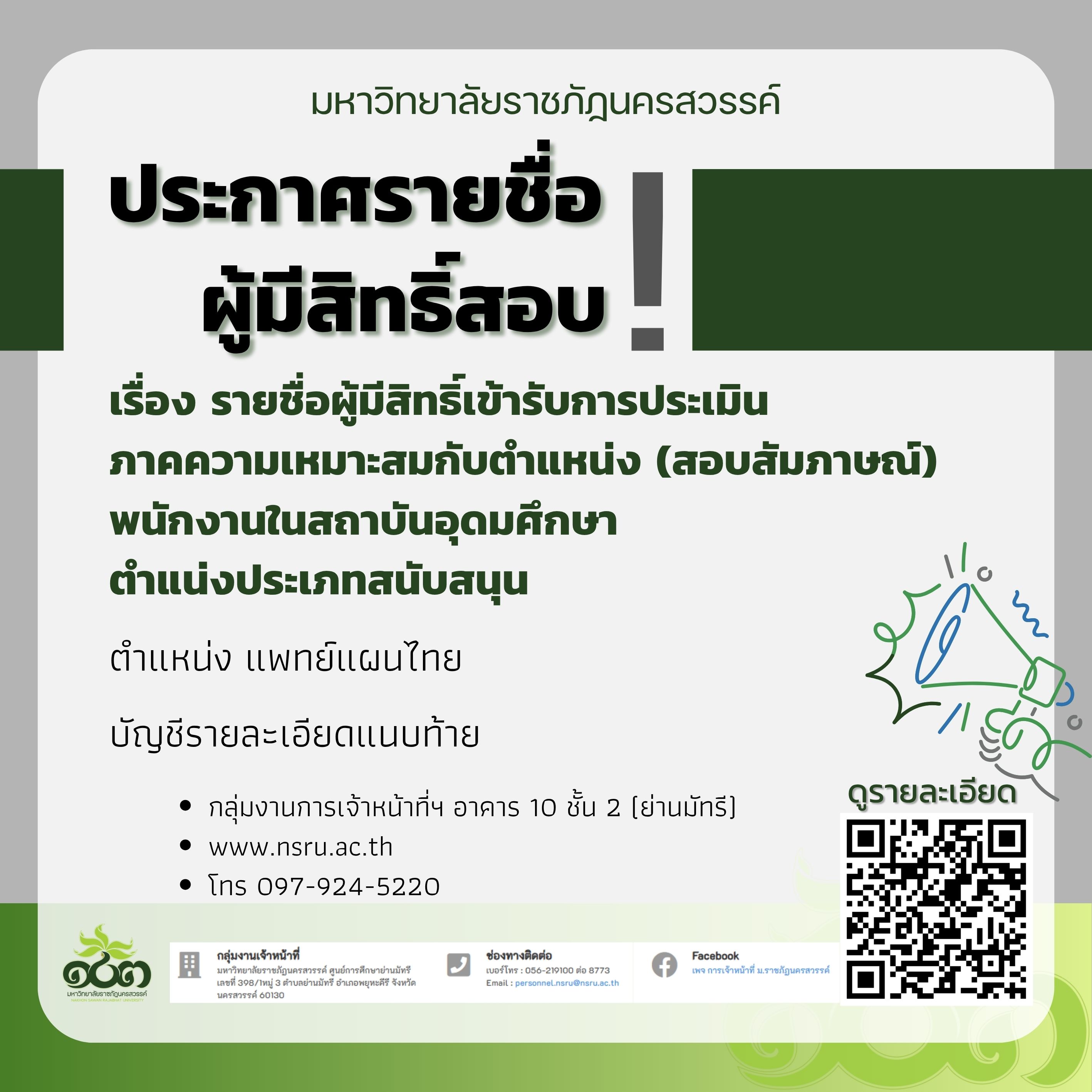 รายชื่อผู้มีสิทธิ์เข้ารับการประเมินภาคความเหมาะสมกับตำแหน่ง (สอบสัมภาษณ์) พนักงานในสถาบันอุดมศึกษา ตำแน่งประเภทสนับสนุน