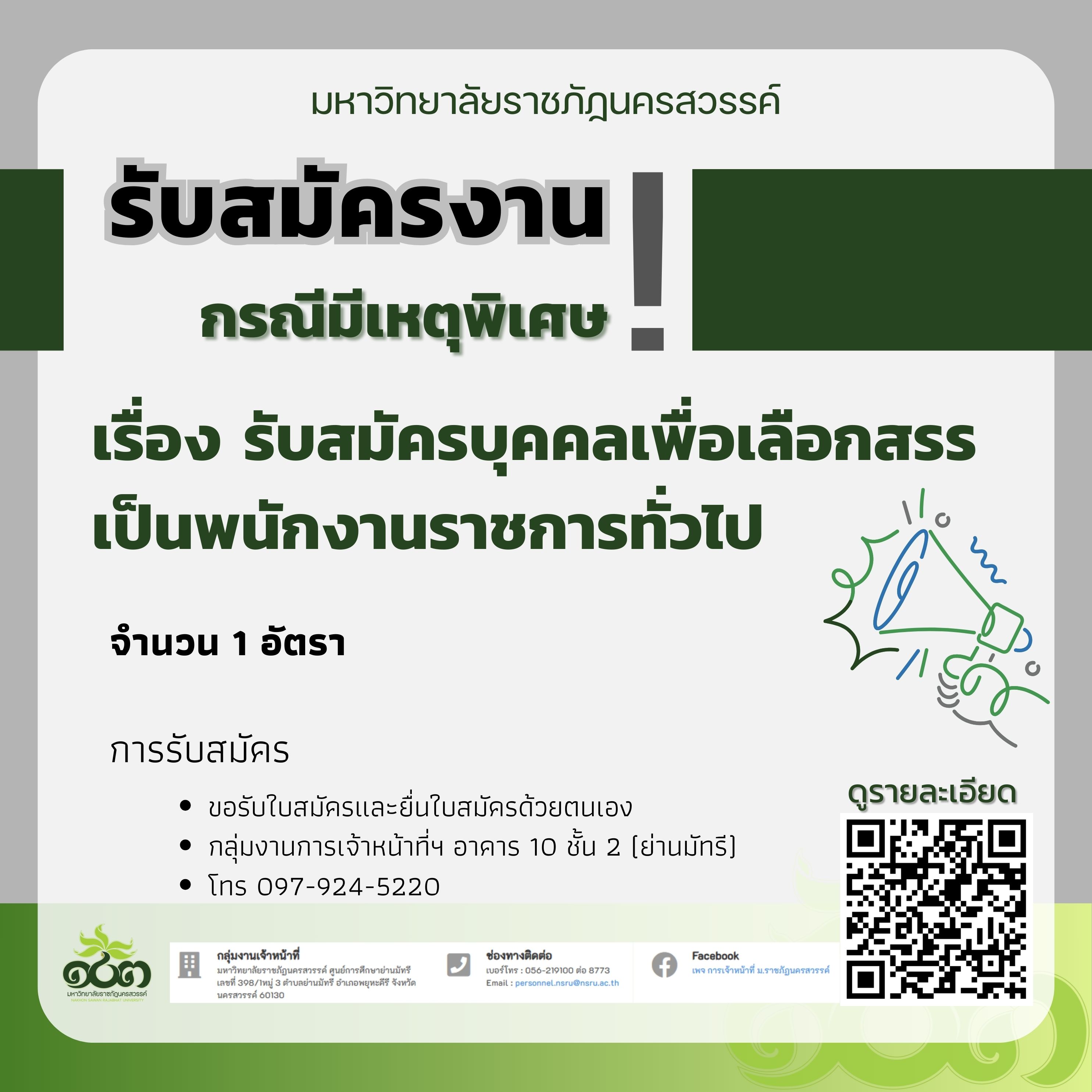 รับสมัครบุคคลเพื่อเลือกสรรเป็นพนักงานราชการทั่วไป