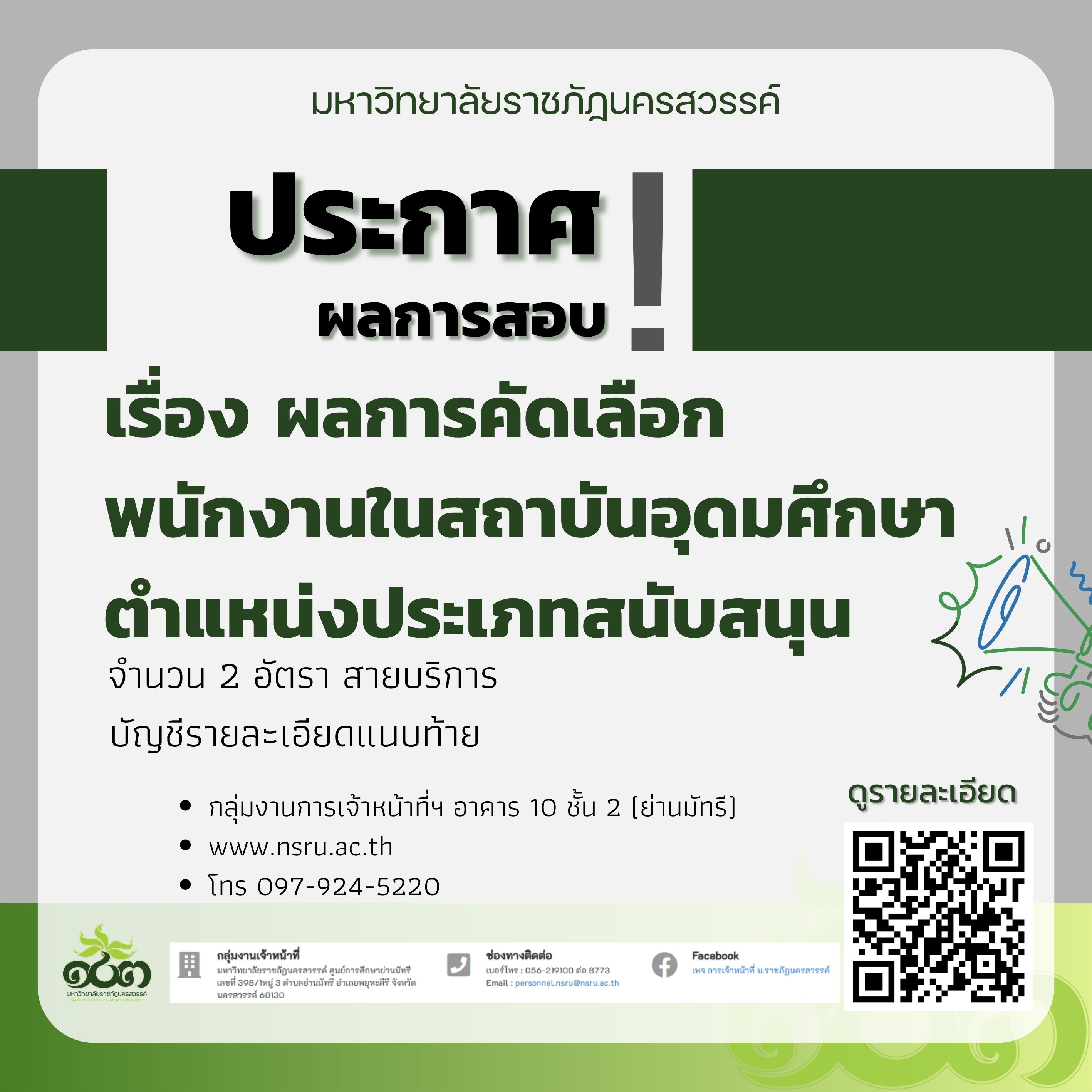 ผลการคัดเลือกพนักงานในสถาบันอุดมศึกษา ตำแหน่งประเภทสนับสนุน