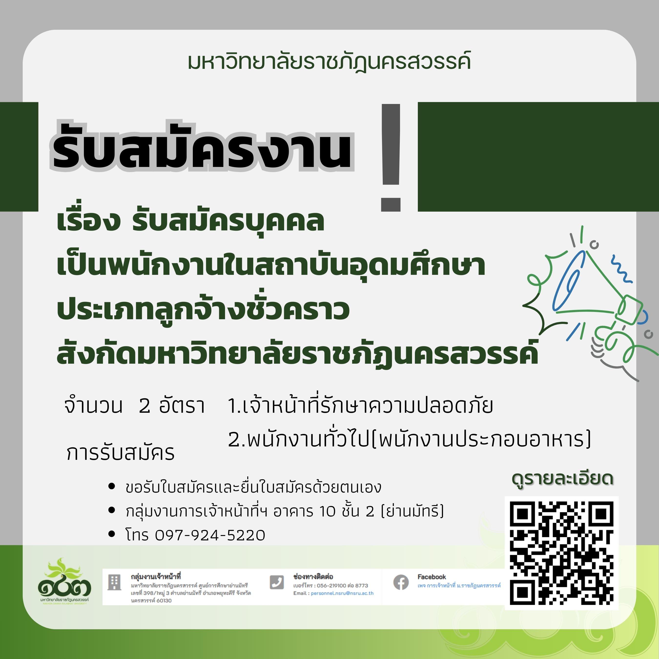 รับสมัครบุคคลเป็นพนักงานในสถาบันอุดมศึกษา ประเภทลูกจ้างชั่วคราว สังกัดมหาวิทยาลัยราชภัฏนครสวรรค์